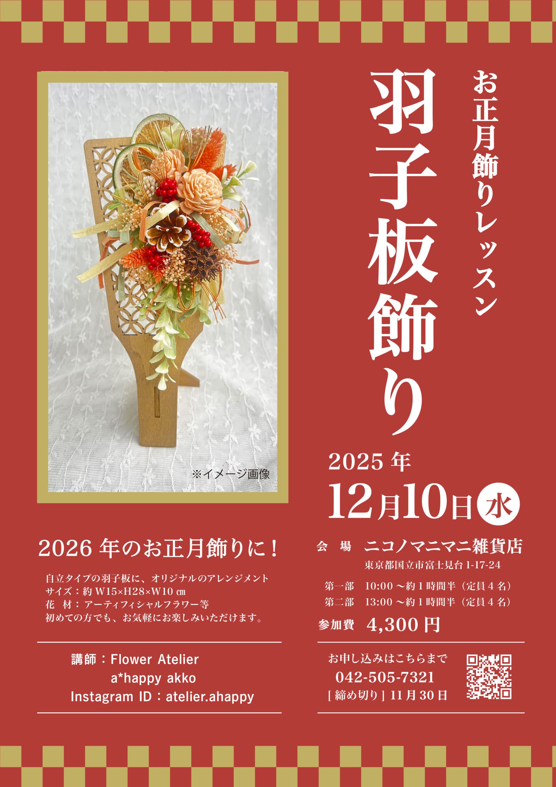 今年も、2025年12月10日(水)に、ニコノマニマニ雑貨店でお正月飾りレッスンを開催しまーす‼︎